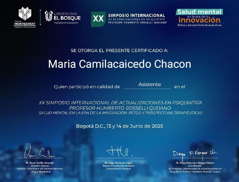 Soy Médico y Cirujano graduada de la Universidad del Rosario, especialista en Psiquiatría y Salud Mental de la Fundación Universitaria Sanitas. Con experiencia en consulta de Promoción y Prevención de la Salud desde el 2014 en mi carrera como médico general y desde el área de la psiquiatría hace 6 años que inicié mi residencia, centrándome en el manejo de población de 14 años en adelante, particularmente en edad adulta y geriátrica. A lo largo de mi carrera profesional he tenido la oportunidad de trabajar en instituciones reconocidas como la Clínica Campo Abierto y en la actualidad en la Clínica Emmanuel y la Unidad Integral de Toxicología (Unitox) donde he ampliado mis conocimientos, crecido a nivel tanto personal como profesional lo que me permite abordar al paciente de una manera integral.
